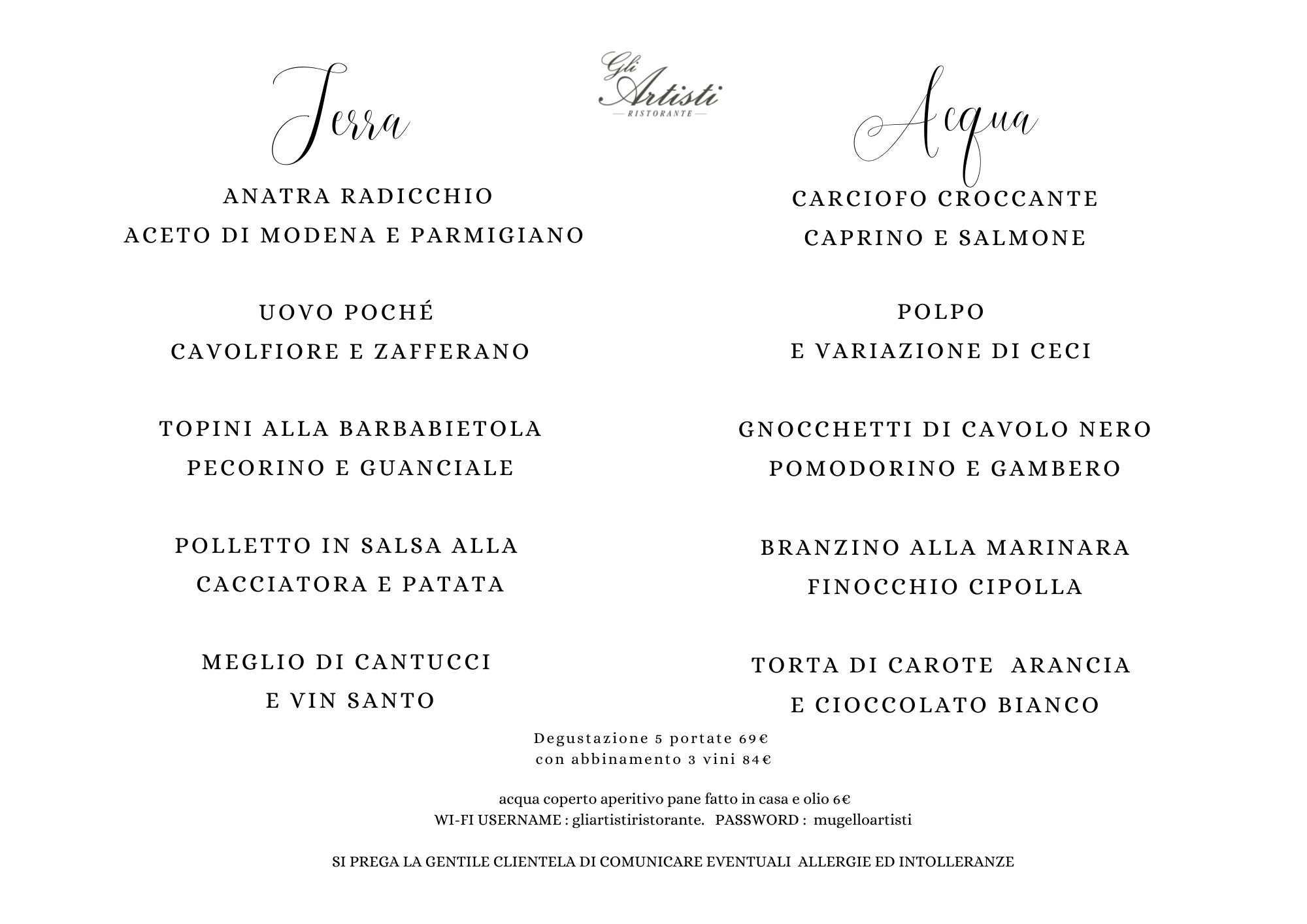 Ristorante Gli Artisti degustazioni gourmet